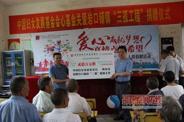 邵阳新闻在线讯(通讯员 王百利 高春奇) 7月20日,“中国妇女发展基金会心基金救助三孤人员捐赠仪式”在邵阳县岩口铺镇中学举行。邵阳县妇联、民政局、残联、镇党政“一把手”、部门负责人、村干部和100名三孤受捐对象等出席了本次现场救助活动。