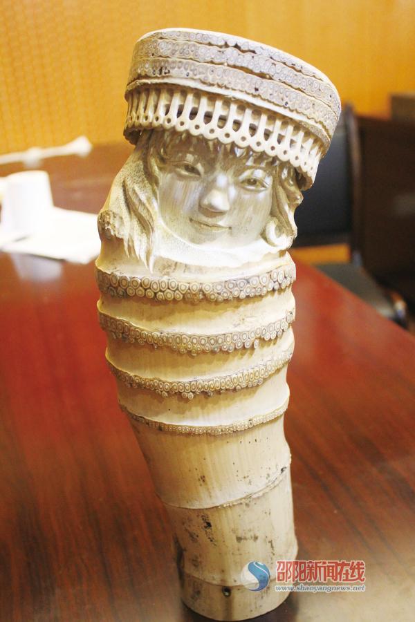 刘序干的竹雕作品《花瑶姑娘》。 陈贻贵 摄