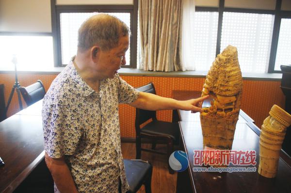 “你们看这个作品,它很好地利用了竹根天然的形状进行雕刻,做成裙摆的样子,十分逼真,就像一名少女在翩翩起舞。”指着作品《花瑶姑娘》,胡老点评道。随后,胡老又拿起一件形似线装古书的竹刻作品《邵阳人物蔡锷》进行展示。“这件作品也是巧妙地运用了材料,你看他把这个卷起的竹子,做成一本古书模样,很有创意。”这件用竹子雕刻的作品不但跟古书十分形似,细节更是生动传神,骑在战马上的蔡锷将军英姿飒爽、威风凛凛,竹刻的侧面还清晰可见书页的纹理。
