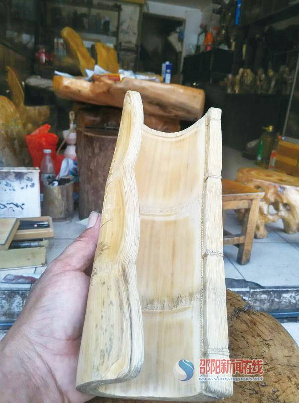竹刻作品《邵阳人物蔡锷》形似一本线装古书。 陈贻贵 摄