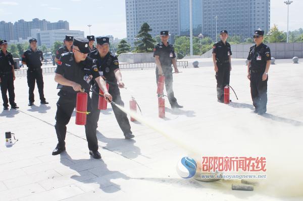 市博物馆安保人员拿起灭火器亲身体验“灭火“。 陈贻贵 摄。