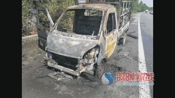 邵阳新闻在线讯(记者 宋三刚 通讯员 陈泽杰)高温天气持续,高速路上连发多起车辆起火自燃事故。7月27日,沪昆高速邵阳段又有一辆货车自燃,导致整车燃烧,货物和车辆完全烧毁,损失近十万,所幸无人员伤亡。