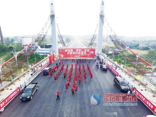 邵阳路桥公司在建成的大桥上开展主题党日活动。 唐松涛 摄