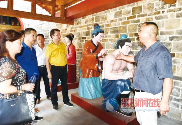 图为游客在听工作人员讲解岳母刺字的故事。杨敏华 摄