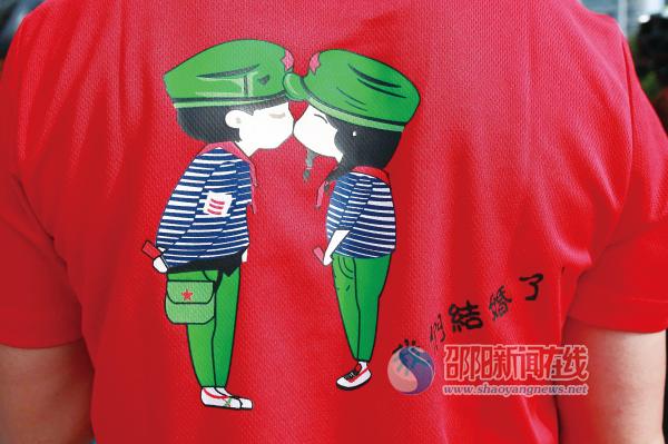这股清新的婚恋之风直接带到了婚礼上。就在8月18日,经他们促成的一对新人,举行了简朴、热烈而时尚的婚礼。早上8时30分,68名骑友、跑友通过朋友圈事先邀约,齐聚一起骑行跑行接亲。从女方娘家到小两口新家,没有庞大的迎亲车队,也没有碎屑一地的鞭炮燃放。接亲队伍统一身穿12元一件的印有“我们结婚了”喜庆图案的红色文化衫,手持心形气球,喊着“文文媛媛,喜结良缘”等祝福口号快乐行进,成为街头令人瞩目的文明景象。