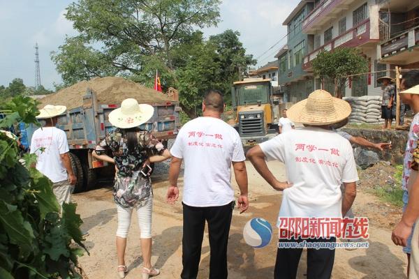 邵阳新闻在线讯(通讯员 黄又生 杨建华 吴小飞)“你看那个戴草帽的女干部,头发上的汗像滴水一样。人家干部这样帮我们扶贫,我们自己也得扎扎实实配合。”8月23日上午,在邵阳县七里山场木铎村,驻村帮扶的该县机关事务接待中心、邮政公司两个单位的党政一把手、场党委书记、扶贫队员头戴草帽、顶着烈日,与村党员一道,正在加紧硬化一条通往学校的上学路。周边村民看着汗流浃背的“草帽干部”,自言自语地发出感慨。