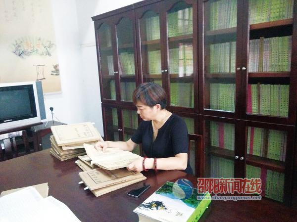 满懿教授在绥宁县档案局查阅有关外公的文史资料。