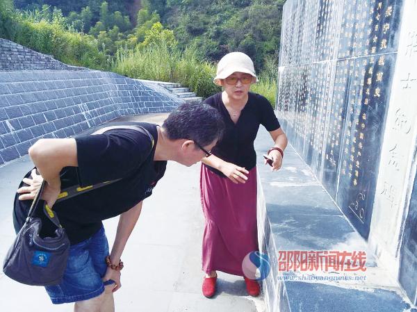 满懿教授在寨市“抗日阵亡将士纪念碑”前寻觅先人遗迹。