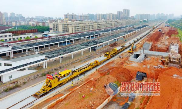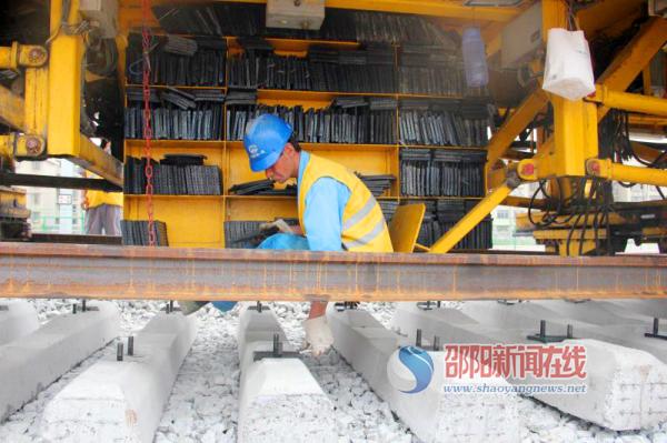 据工作人员介绍,施工过程中两根枕木间的距离是0.6米,一旦发现误差,工人们就会立即对铺轨机的参数设置进行调整。截至目前,邵阳往东铺轨已进入衡阳境内,邵阳至衡阳段铺轨完成了90%,有望2017年9月底完成;邵阳至怀化段铺轨任务,将于2018年2月完成。