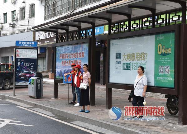 宝庆西路原邵阳医专附属医院公交站点,因没有坐凳,市民只能站着候车。 杨敏华 摄