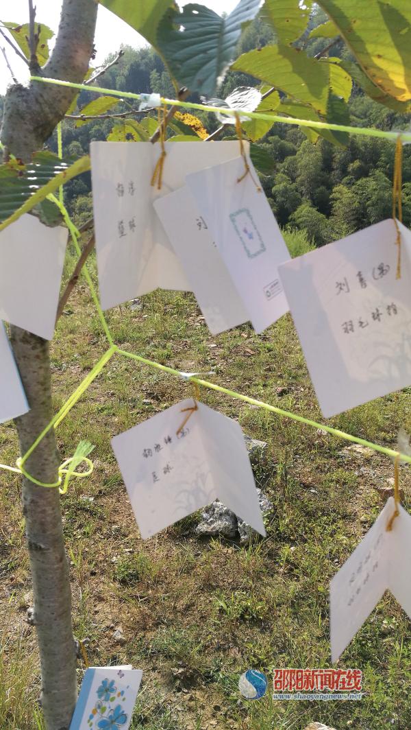 “愿望树”上的小卡片寄托留守儿童的小愿望。 贺旭艳 摄