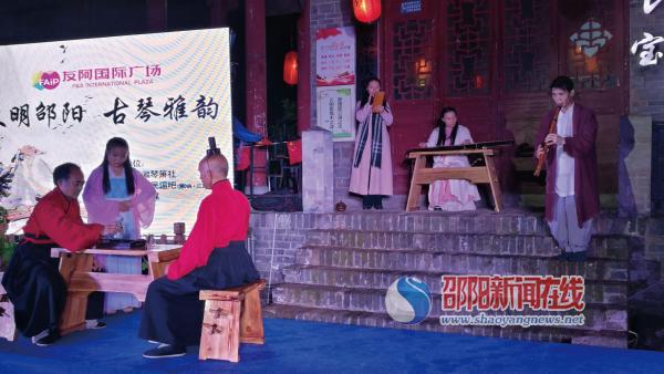 当晚,资江两岸灯火相映,古老的城楼上展现出一幅幅古色古香的画面。身穿汉服的传统文化和古琴艺术爱好者们,随着《竹枝吟》、《笑傲江湖》、《阳光三叠》、《卧龙吟》等曲目呈现,或奏琴或吹箫,或清吟或颂唱,或表演香道、茶道、情景剧。潺潺琴音、渺渺古韵不仅带来了视觉和听觉上的唯美感受,也为邵阳这座古城悠久的历史文化和不断提升的精神文明做出了精彩诠释。