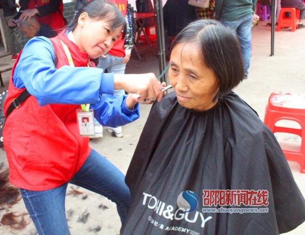 夏芝英现年82岁,在罗市镇敬老院住了13年了,她说,每年都有不少爱心人士前来看望他们,让他们倍感温暖。正在为老人剪头发的义工邓君英说,他们一大早就来到了敬老院,为大家进行义剪、康复理疗等养老服务活动,她说,每次参加义工活动,他们都会把老人当做自己的父母一样,看到老人们开心,自己就很高兴。当天,他们不仅义务给敬老院的老人剪头发,该给附近的一些老人义剪,受到欢迎。特意赶来理发的老人罗爱莲说,“这是我平身第一次享受免费服务,非常高兴。”