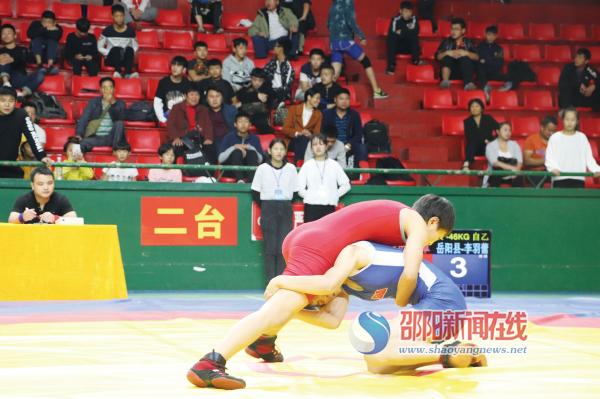 夹颈背、过胸摔、抱腰滚桥……比赛场上,小将们纷纷拿出看家本领,展开激烈争夺,力量与技巧的展示不时赢得现场观众的阵阵掌声和呐喊声。作为东道主,本次比赛我市共派出邵阳代表队和武冈市代表队共68名运动员参赛。
