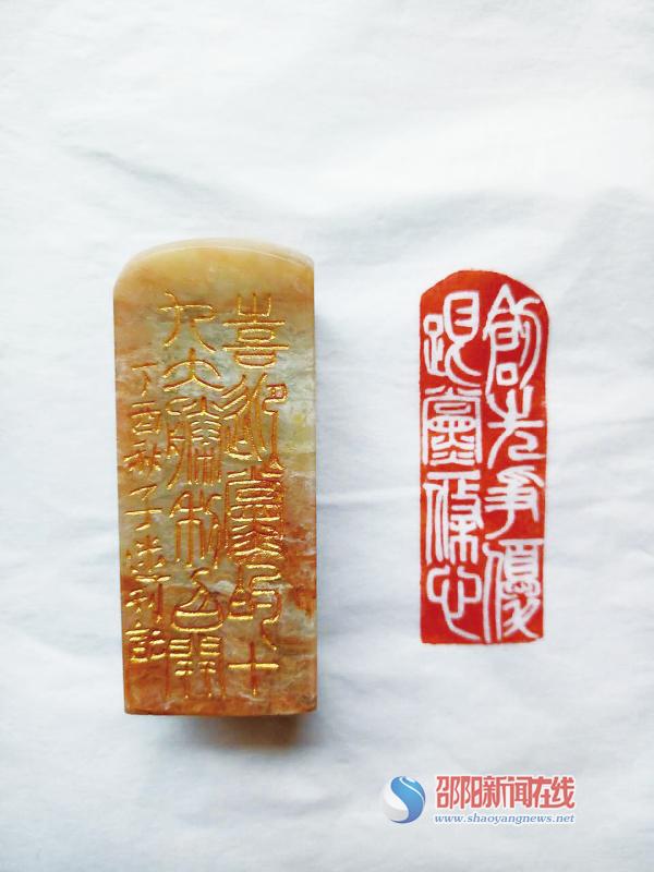 邵阳新闻在线讯(记者 袁光宇 通讯员 牛菲菲)10月19日上午,位于市区魏源文化市场的缪得堂内人头攒动,不少闻讯而来的民间艺人聚集在这里,争着一睹李子迷连夜雕刻的一方石印:“创先争优,跟党一条心。”