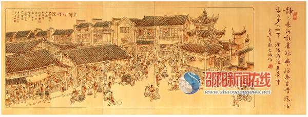 此次参展的竹烙雕刻作品《印象老街》展现了市区中河街曾经商铺林立,以传统手工业著名的繁华老街场景。唐文林说,随着现代社会的发展和城市化进程的加快,大多老街已经永远地消逝在人们的视野中。他想通过传统竹烙雕刻,把消失的老街巷记录下来,给后人留下美好的回忆。