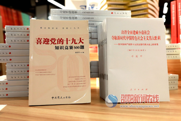 据悉,自昨日起,邵阳市区及八县一市的各新华书店中心门店和各书里书外共享书店等实体书店均有配套的十九大读物出售;广大市民还可以通过“悦达书城”线上购买该套读物。