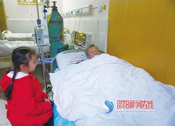 图为乖巧的陈玉琳陪在爷爷病床边。
