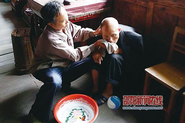 杨龙清女儿龙美艳帮龙奇军老人洗脚。