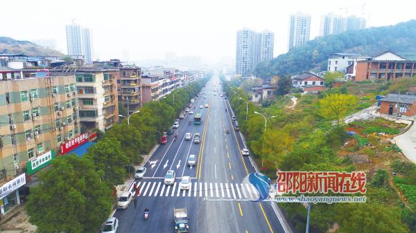 焕然一新的建设南路道路整洁宽敞,交通标线清新,车辆行驶井然有序。建设南路的通车大大减轻了邵石南路、邵阳大道以及邵水东路步月桥段的交通压力。摄影报道