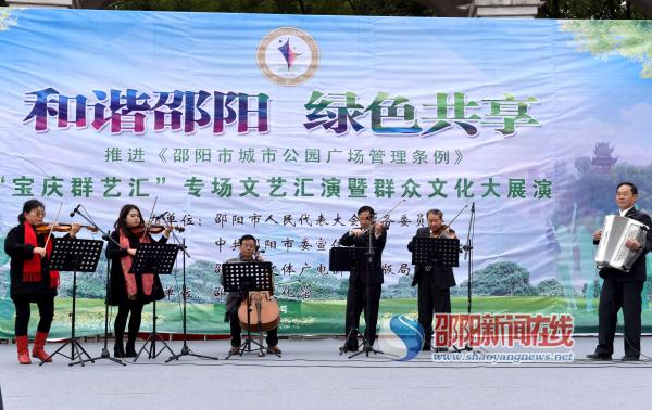 "宝庆群艺汇"、"群众文化大展演"是由市文化馆打造的全市文化品牌系列活动,现已连续举办多场,不仅形式不同,参与人数众多,已成为一项颇具影响力的文化品牌活动。我市首部地方性法规《邵阳市城市公园广场管理条例》将于2018年1月1日施行。通过此次展演活动,让《邵阳市城市公园广场管理条例》的颁布深入民心,更好地为人民群众打造和谐、文明、美丽、舒适的城市公共活动空间,为我市创建全国文明城市奠定坚实的基础。