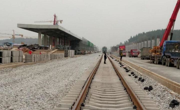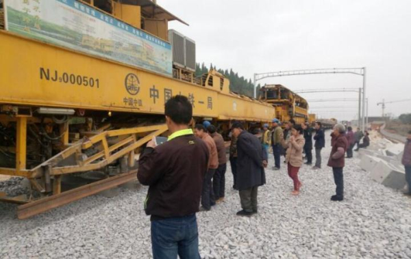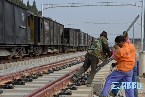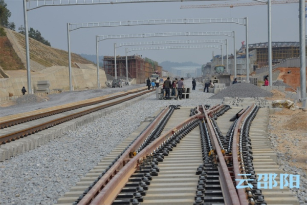 邵阳新闻在线讯(通讯员 罗理力)12月10日,怀邵衡铁路隆回县桃洪镇段在抓紧铺设轨道。怀邵衡铁路起于怀化南站,经邵阳至衡阳东站,全长318公里,为兰厦铁路组成部分,设计时速200公里,预计2018年建成通车。该铁路在隆回县境内长42.91公里,途径横板桥镇、南岳庙镇、桃洪镇、周旺镇、滩头镇等七个乡镇并设立车站。