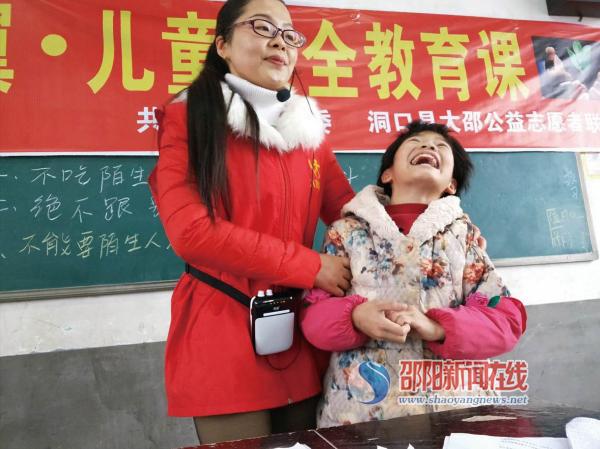 邵阳新闻在线讯(记者 贺旭艳 通讯员 尹小娟 刘之鹤)12月7日,一群身穿红马甲的大邵公益志愿者来到洞口县竹市镇大水完小,给孩子们带来了“大邵之翼”儿童安全教育课。亲切幽默的语言、精美生动的课件、欢快活泼的互动,让孩子们在浓浓的关爱气氛中学会如何保护好自己。