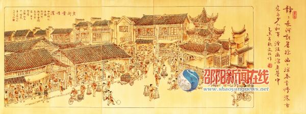 唐文林创作的烙刻作品《老街昔情浓》,把邵阳老街昔日繁华的场景记录下来。