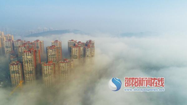 1月22日早上,市区笼罩在大雾中,一栋栋高楼大厦在雾中林立,宛如海市蜃楼,人间仙境。