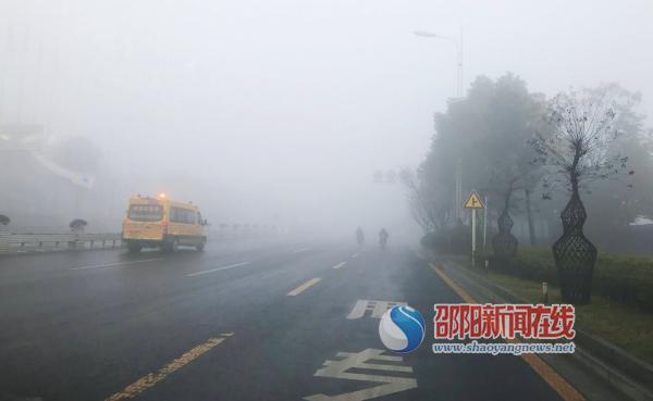 邵阳新闻在线讯(文/图 记者 何思奇 谢冰)1月22日早晨,市区出现大雾。记者行经邵阳大道路段,发现建设南路路口自西向东方向车行缓慢,经过路口以后,楼房、车辆都被笼罩在一团雾气之中,能见度大大降低。