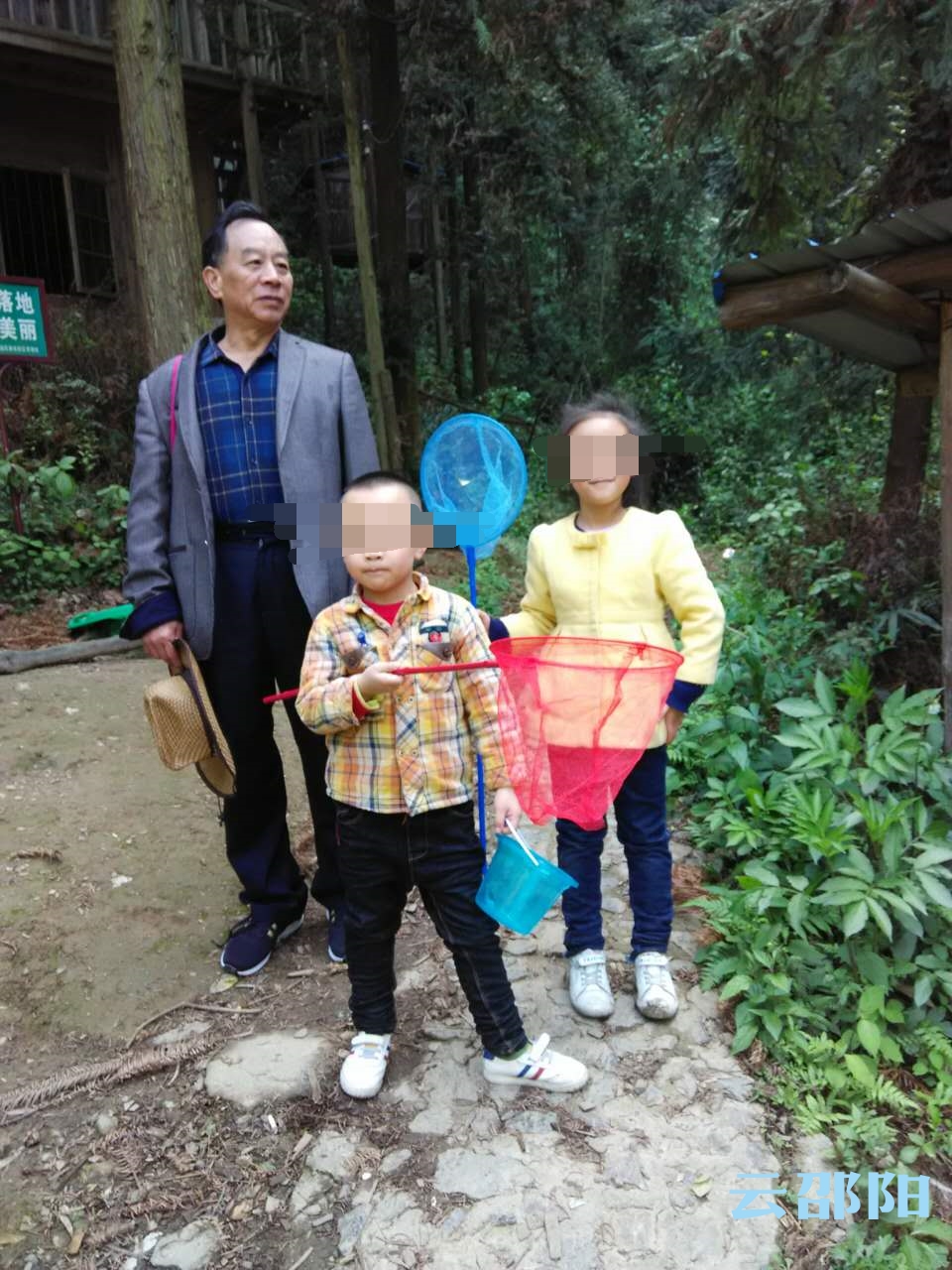 (当天,袁愈云携孙子孙女在白水洞游玩。照片由袁愈云提供)
