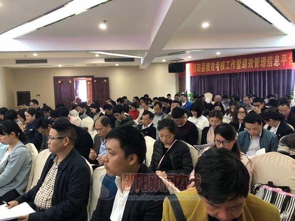 邵阳新闻在线讯(通讯员 刘婷 王宇)4月17日上午,邵阳县召开2018年绩效考核工作暨绩效管理信息平台培训会,全县21个乡镇场、96个县直单位的117名领导干部参加了会议。