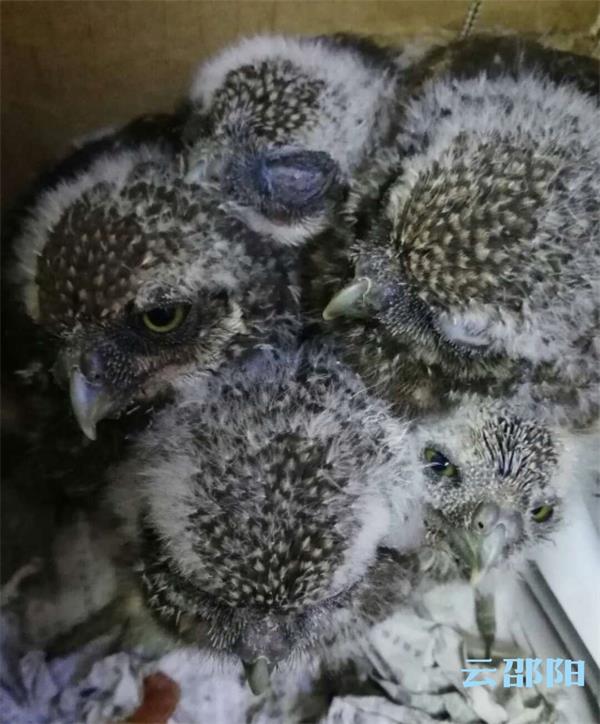 当他们再往排气管中探望时又被吓了一跳,原来管子内还有四只猫头鹰。两人小心翼翼地将它们放在纸箱子里。担心放在家里会出问题,刘继辉立即给城步苗族自治县林业局打电话求援。