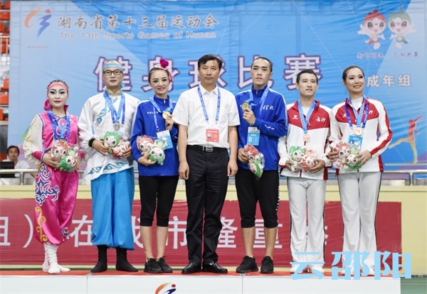 云邵阳客户端9月7日讯(记者 李超 申兴刚) 9月7日,第十三届省运会(成年组)健身球比赛正式落下帷幕。最终,怀化市代表队一举拿下集体自编套路、女子双人自编套路、男女混合自编套路三个项目的金牌,邵阳市代表队夺得集体规定套路项目金牌和集体自编套路项目的银牌。