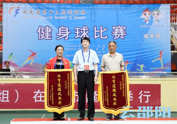 邵阳市代表队(左)、株洲市代表队荣获“体育道德风尚奖”