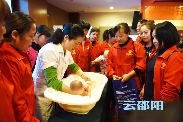 云邵阳客户端11月10日讯(记者 申兴刚)11月10日下午,70余名下岗失业困难女职工参与邵阳市总工会主办的高级母婴护理师培训,学习初生婴儿护理知识。