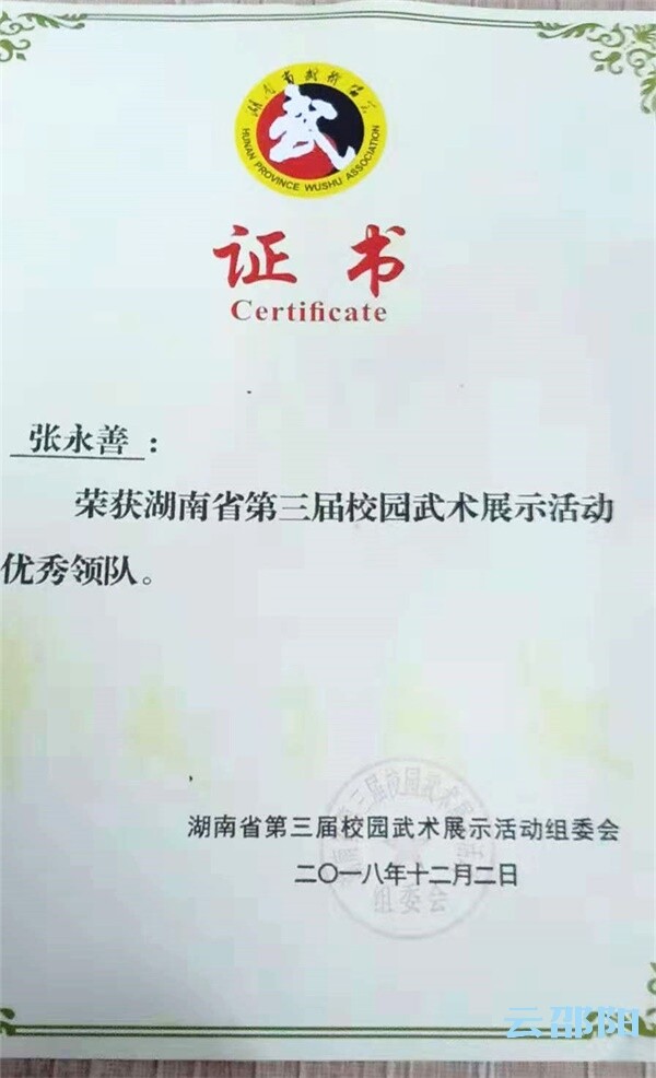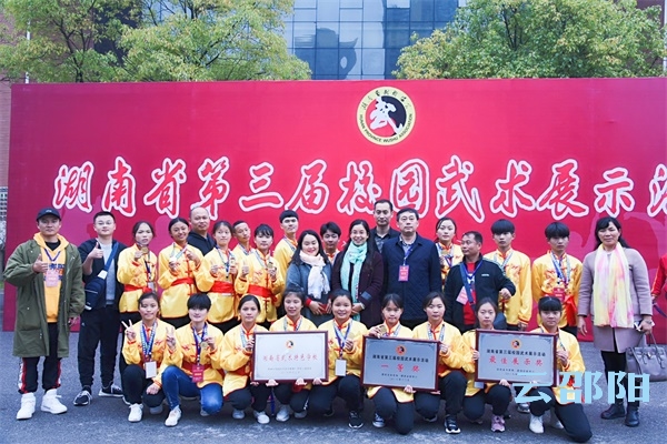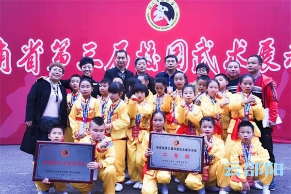 云邵阳客户端12月3日讯(记者 陈贻贵 通讯员 孙建成)12月3日,邵阳市武术代表队领队张永善带领队员们从长沙载誉而归。12月2日,由湖南省体育局、省教育厅联合主办的湖南省第三届校园武术展示活动在湖南师大附中高新实验中学体育馆举行,邵阳市特殊教育学校、双清区江湖小学武术代表队分别荣获一等奖和二等奖。