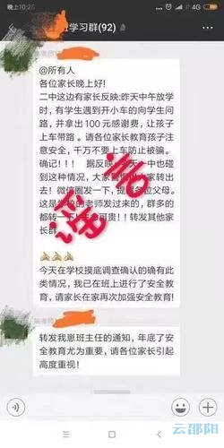 近日,部分网友朋友圈、微信群里有这样一条消息:市第二中学这边有家长反映,中午放学有人拿100元钱骗小孩上车带路,市第一中学也碰到这种情况。