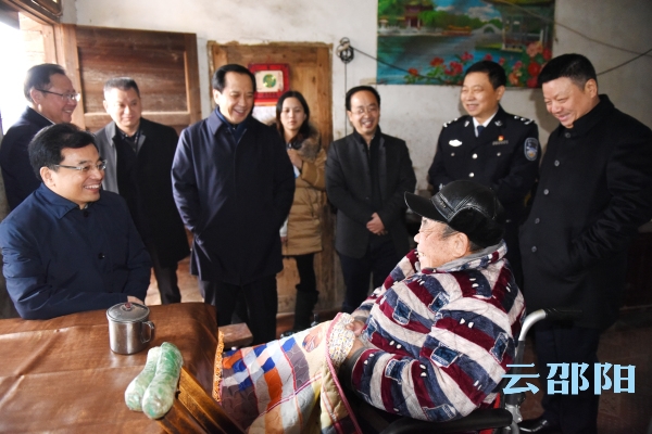 王少峰、许显辉一行首先来到新邵县经开区塘口社区,看望建档立卡贫困户彭正丰。彭正丰今年78岁,妻子多病瘫痪,儿子在外务工,家庭条件较差。王少峰、许显辉详细询问彭正丰的身体情况和家庭状况,并向彭正丰一家送上节日问候和祝福,勉励他们在党委政府的关心帮助下,战胜眼前困难,让日子越过越红火。在新邵县酿溪镇土桥社区,党员曾德恍年老多病,妻子去世,下身瘫痪,子女经济条件较差。王少峰说,老一辈在艰苦的条件下为革命和建设事业做了大量工作,党和人民永远不会忘记。他叮嘱当地负责人一定要关心照顾好困难党员的生活,解决好住房、看病等方面的现实难题,并代表省委省政府向老人送上了新年祝福。