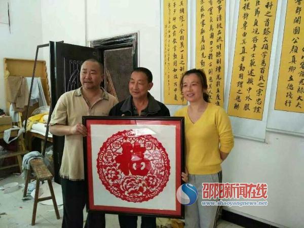 邵阳新闻在线讯 (通讯员 向美君)1月26日,年味渐浓。受广州朋友委托,笔者去高沙镇彩色剪纸世家、非物质文化遗产及传承人汪荫柱、汪阳华父女俩开办的兰雅斋字画装裱和剪纸经营店为朋友选购大红剪纸年画,顺便拜访了传承人汪荫柱、汪阳华父女。