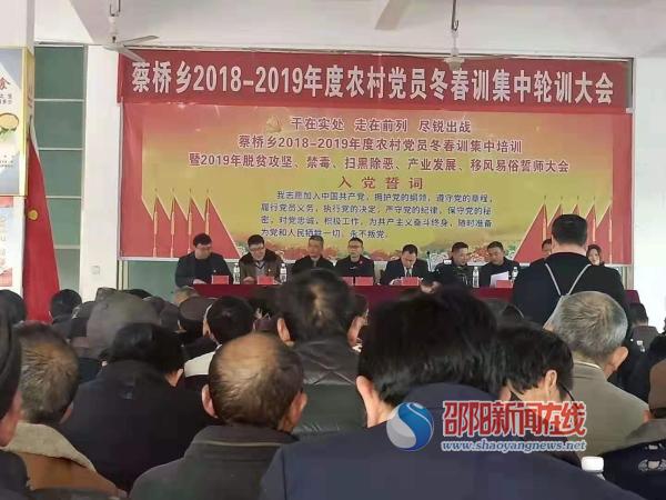 邵阳新闻在线讯 (通讯员 李燕)3月3日,邵阳县蔡桥乡组织开展党员冬春训大会,全乡500多名党员参加了此次会议。为深入推进全面从严治党,乡纪委书记李燕为与会党员上了一堂题为《农村党员也要做遵守纪律的模范》的专题党课。