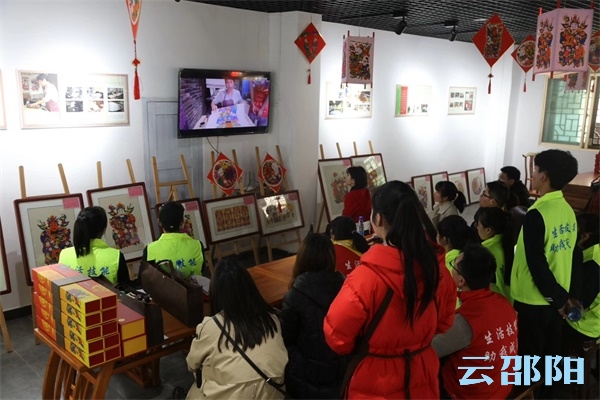 13日下午,福美祥作坊年画展厅内,尹冬香向隆回职业中专学生和老师们认真细致地讲解滩头木版年画的历史、艺术特点以及制作年画的工艺流程,《老鼠娶亲》《猪福万代》《福禄寿喜》等一幅幅生动形象的年画带给学生们最直观的感知。学生们边看、边听、边记,还不忘对自己感兴趣的作品,发出阵阵赞美声。
