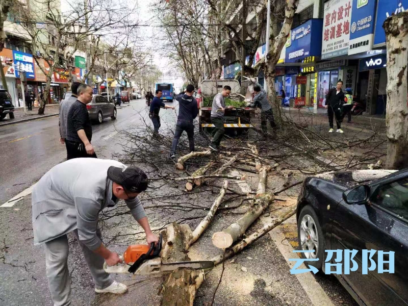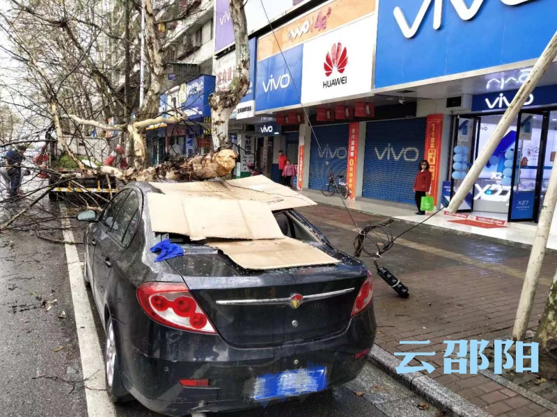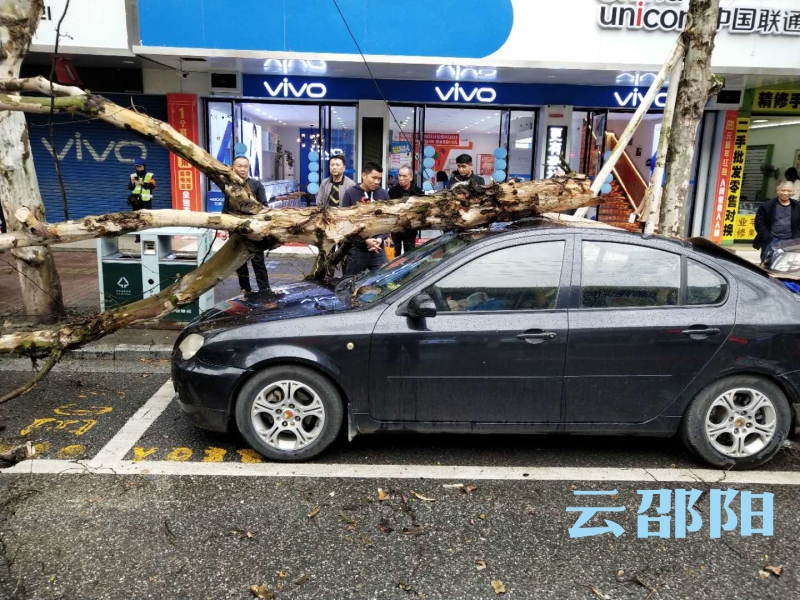 云邵阳客户端3月21日讯(全媒体记者 宁如娟)3月21日15时50分,邵阳市街道绿化所接到举报,市区五一南路一棵大树突然倾倒,砸中了一辆停在路边的小车。