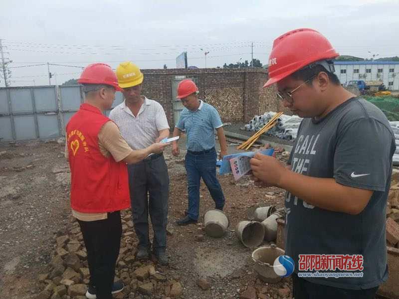 邵阳新闻在线讯(通讯员 申波)为助推邵阳创建全国文明城市工作,积极响应市安委会开展2019年“安全生产月”活动,6月11日,邵阳城建投公司学雷锋志愿者服务队到大祥区湖口井路星湖花苑建筑工地进行了“安全意识人人有,美好生活乐悠悠”志愿者活动,以消除和预防建筑工地“安全隐患、火灾事故”为切入点,对建筑工地开展宣传服务工作。现场共向建筑工地的工人发放创文和安全生产宣传单200份。