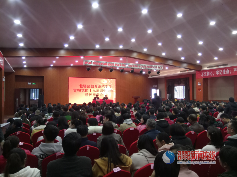 邵阳新闻在线讯(通讯员 王雄云 罗黎黎)12月11日下午,北塔区教育系统学习贯彻党的十九届四中全会精神会议召开。会议由北塔区教育局党委书记、局长刘恒忠主持,区教育局机关全体干部职工、各中小学校党支部书记、校长及教师代表近400余人参加会议。会议邀请了市委宣讲团成员、市社科联主席张千山作宣讲报告。