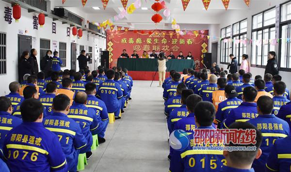 邵阳新闻在线讯(通讯员 康煌 陈明雄)1月17日,在邵阳县强制隔离戒毒所举办“戒毒隐、爱生命、迎新春”联欢会上,戒毒人员表演的文艺节目精彩纷呈、热情奔放、令人振奋,获得广大公安干警、戒毒医生和戒毒人员阵阵掌声。