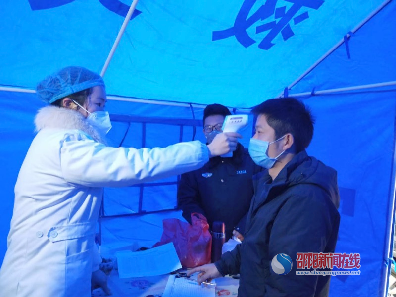 邵阳新闻在线讯(通讯员 陈汉卿 罗杭)2月15日,地处高寒山区的隆回县小沙江镇下起了雪,结起了冰,但小沙江镇新冠肺炎疫情防控服务点的工作人员不畏严寒,坚守岗位,热情地为过往旅客测量体温,宣传疫情防控政策和知识,用真情温暖了春运路。