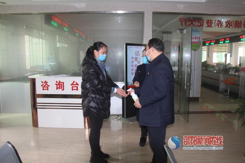 邵阳新闻在线讯(通讯员 肖鹤洲 邹旭中)2月14日,在隆回县政务中心婚姻登记窗口,县民政局党组书记、局长彭文波送来口罩和消毒液,与工作人员一道维护秩序,全面做好防护措施,科学引导新人办理结婚证。当天,120余对新人完成领证。自新冠肺炎疫情蔓延以来,该局把人民群众生命安全和身体健康放在第一位,奋战在疫情防控第一线,谱写了一曲春风满城战“疫魔”的动人之歌。