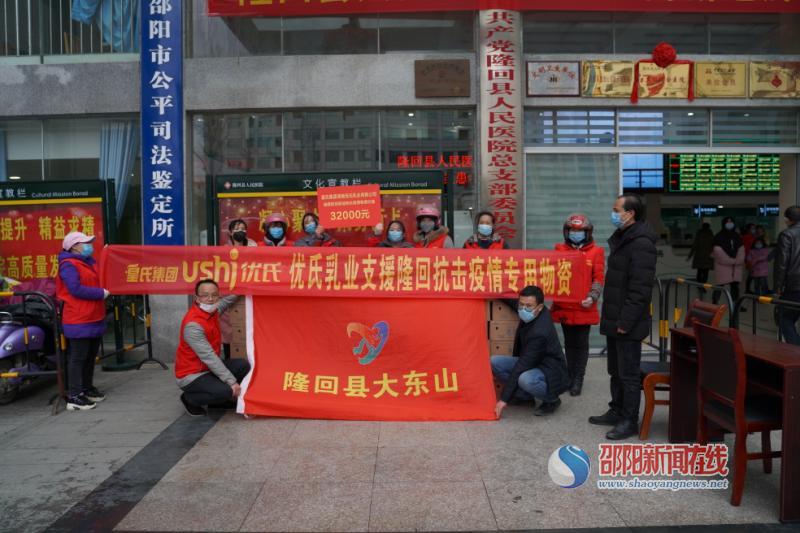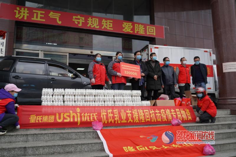 邵阳新闻在线讯(通讯员 肖鹤洲 曾文 肖乾波 )“你们舍小家为大家,忘我战斗在疫情防控第一线,是最可敬可爱的人!你们无恙,群众方安!”2月15日下午,隆回县大东山志愿者协会牵手皇氏集团湖南优氏乳业有限公司,为该县战“疫”一线的工作人员捐赠了5000瓶价值3.2万元的优氏鲜奶和440付价值3200元的中药。县委常委、宣传部长奉锡样代表县委新冠肺炎疫情防控工作领导小组接受了捐赠。捐赠仪式后,这批物资被分派给县人民医院等单位的一线工作人员。
