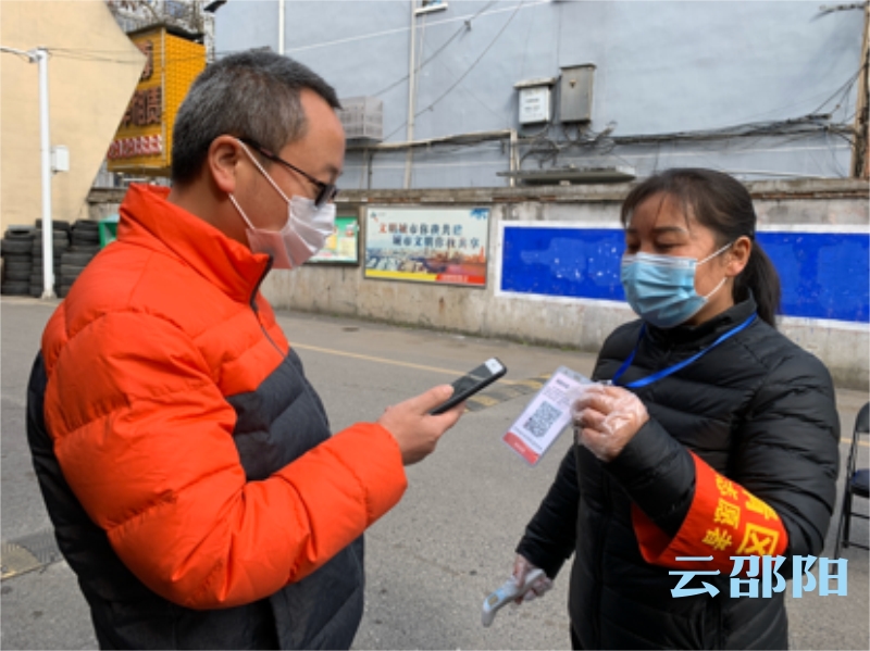 云邵阳客户端2月18日讯(全媒体记者 伍洁 通讯员 伍柯穆 罗扬心)2月18日上午,双清区东风路街道宝东社区工作人员采用微信扫码的方式对辖区内居民进行无纸化无接触登记,这是该街道利用云技术创新登记排查方式,为疫情筑起云防疫堡垒。